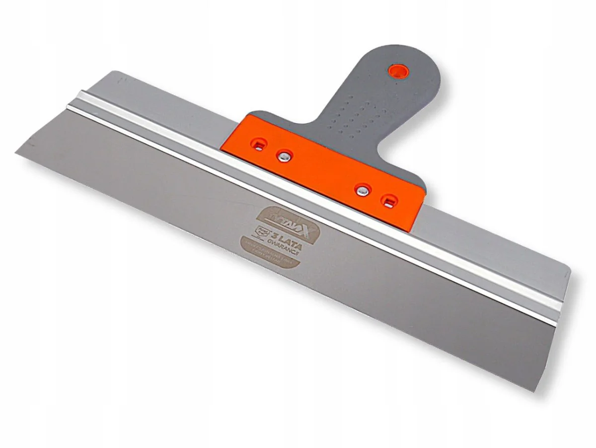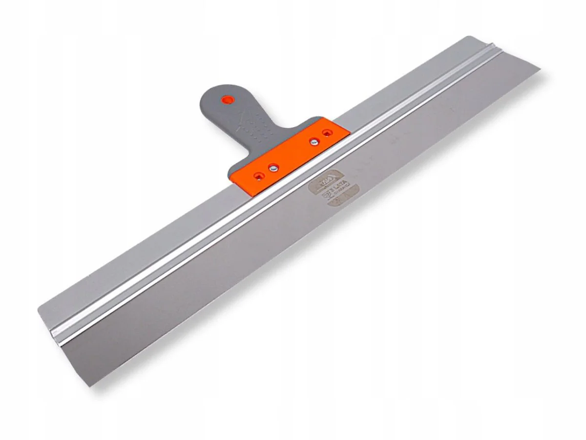 - Paca nierdzewna z uchwytem drewnianym 280–1000 mm – do zaciągania gładzi i wykańczania powierzchni na różnych etapach prac.